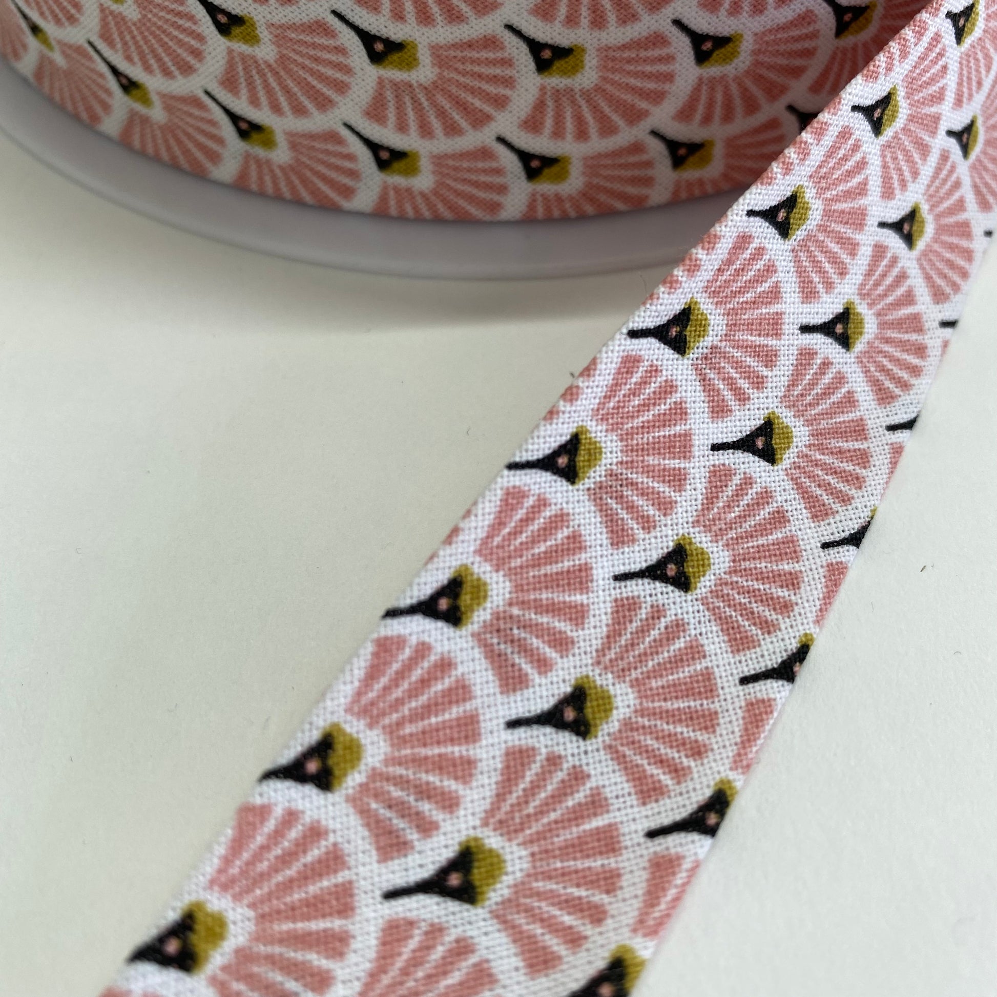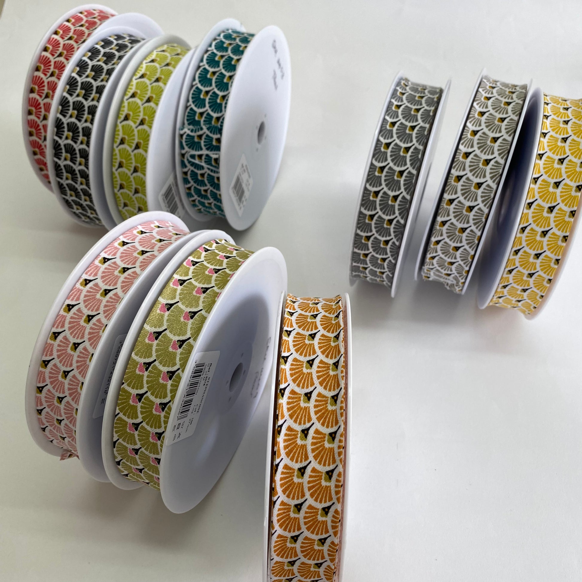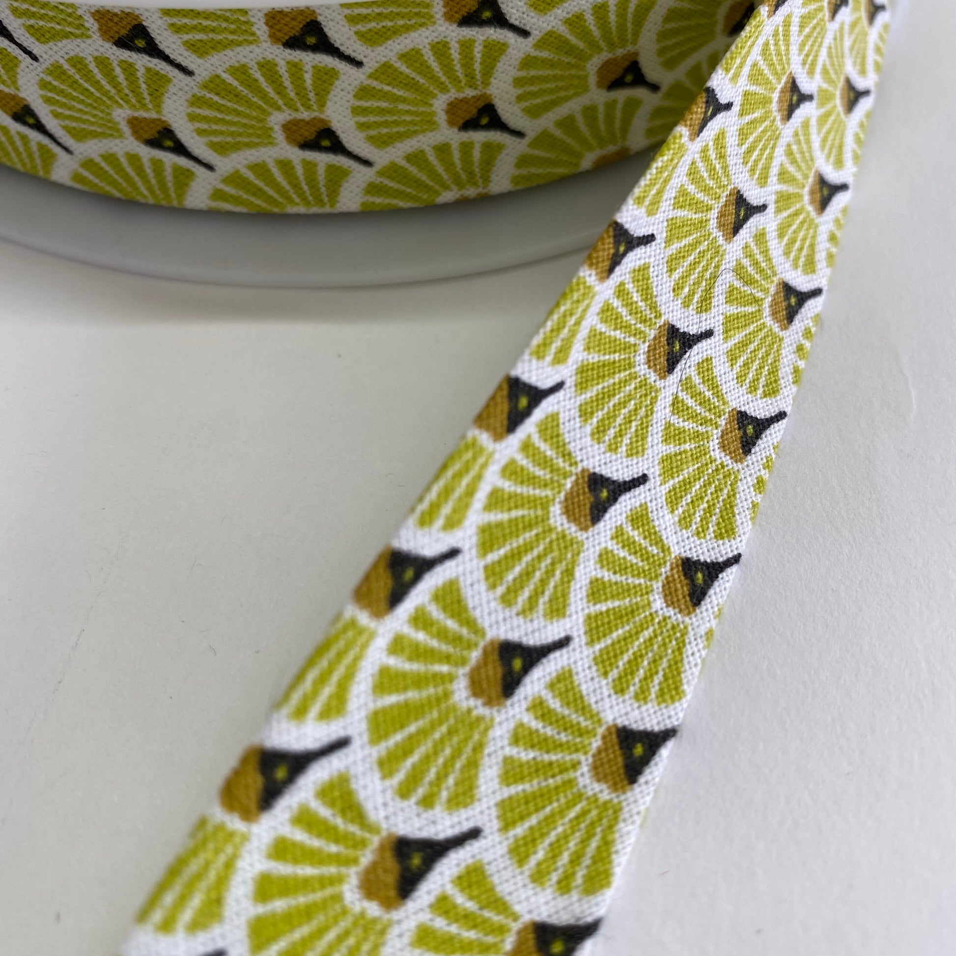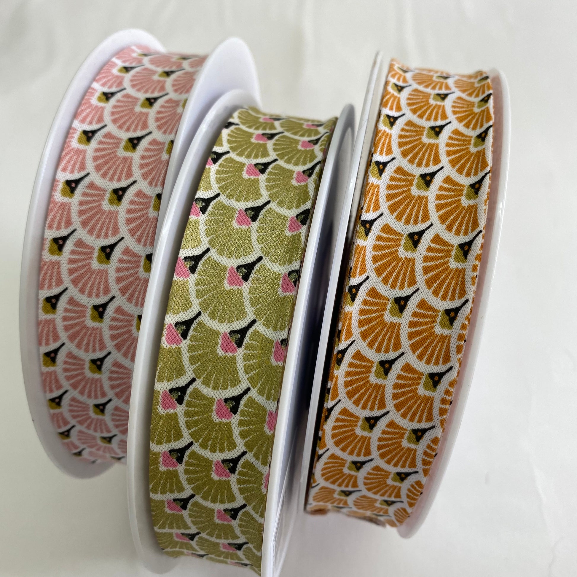 Stunning quality cotton bias binding, in an art-deco inspired fan motif, available in a lovely range of colours. Pre-folded for easy use, silky soft and pliable.