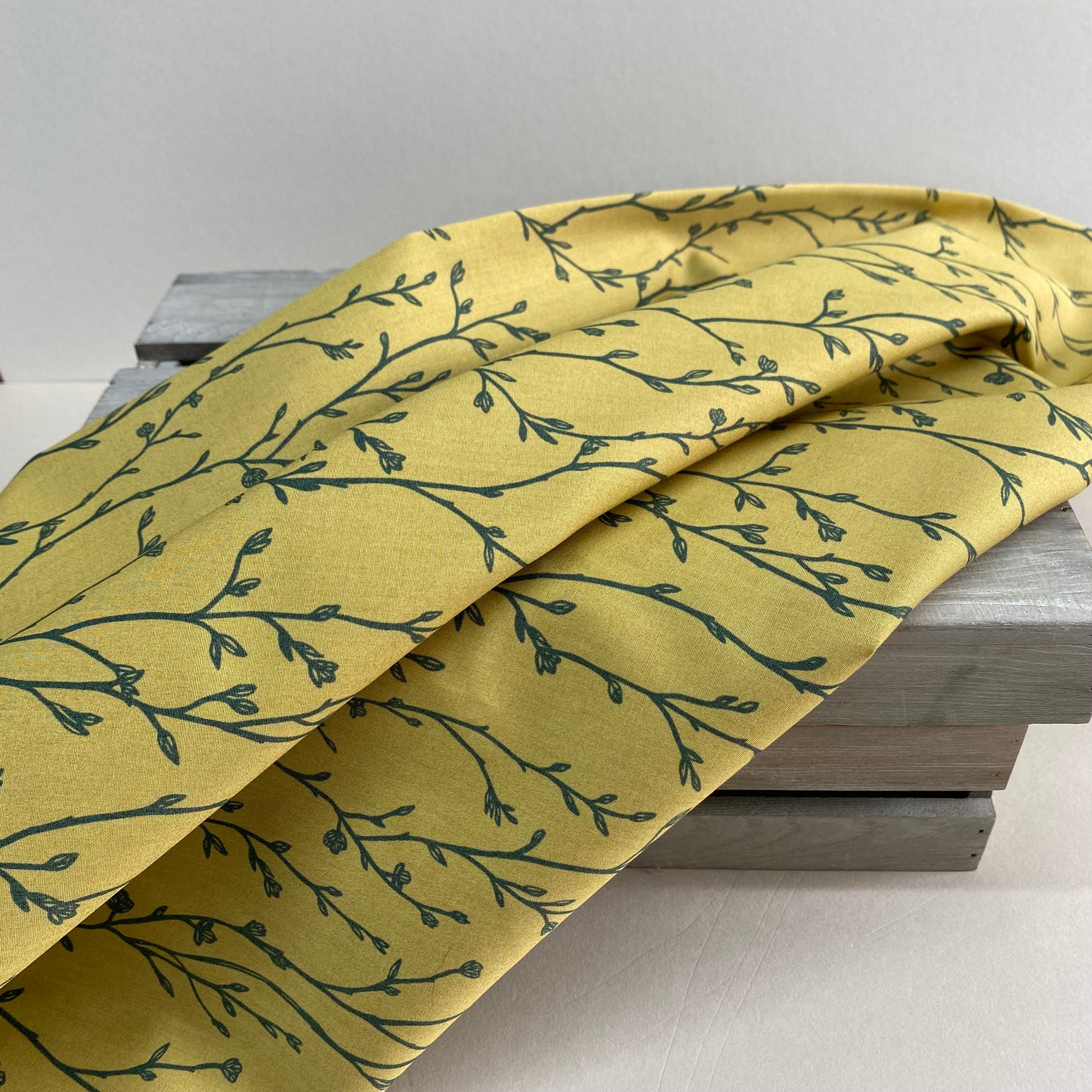 Growing Buds Shadow is a stylised foliage print in tones of deep blue on a warm tone mustard background. From the Spring Equinox collection by Katie O'Shea, this collection was inspired by nature’s promise of new beginnings This stunning print would really complement an autumn complexion.