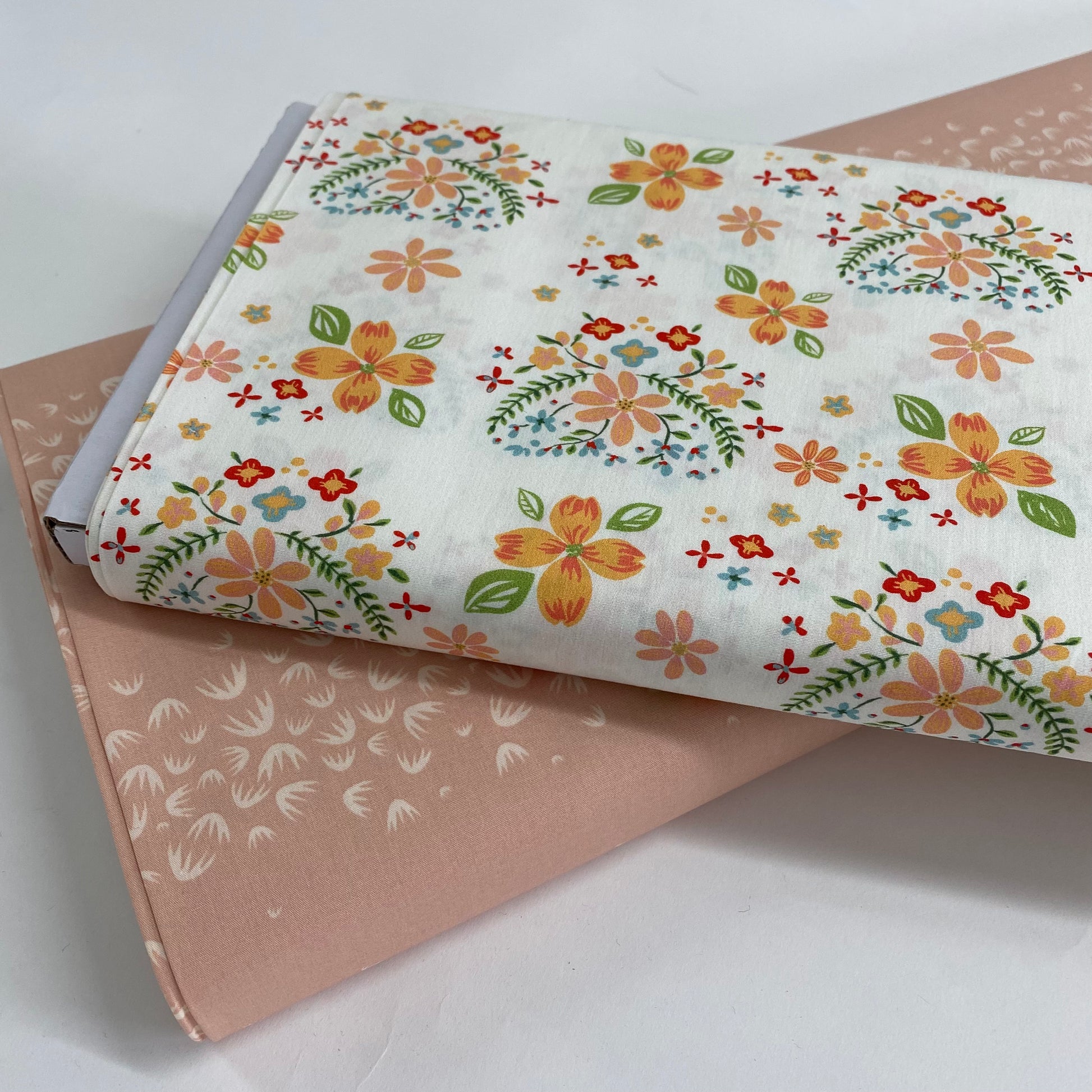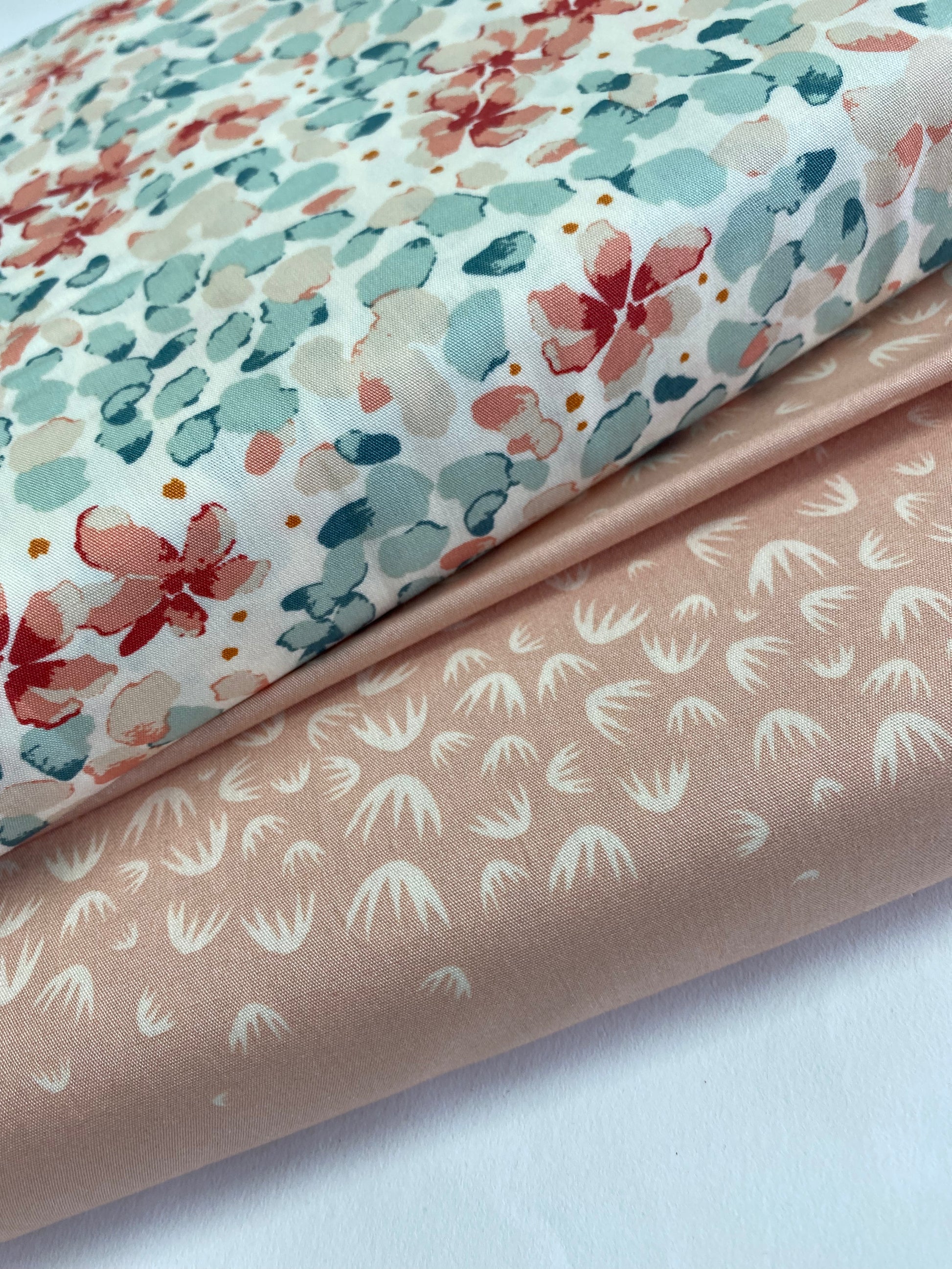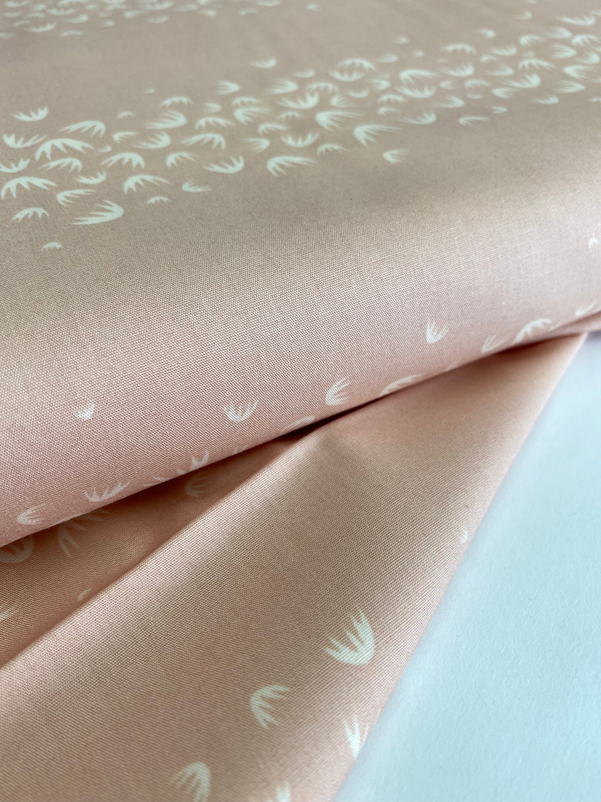 From the Ballerina Fusion collection by Jessica Swift, Magija incorporates blush tones with a soft, dainty repeating pattern inspired by dandelion seed-heads.