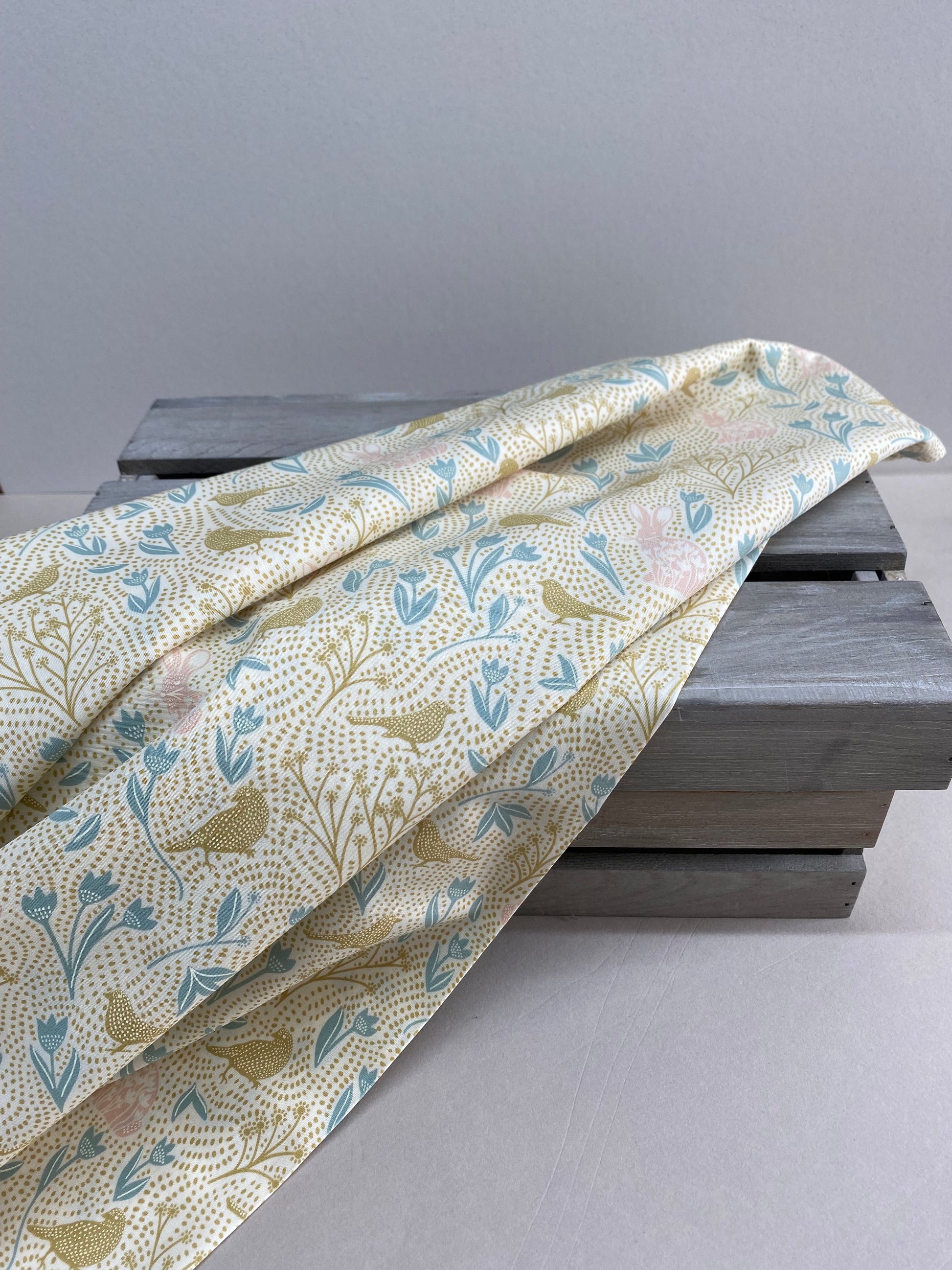 Nesting Season is a stylised petal & animal print in tones of mustard, pink and blue on a warm ivory background. From the Spring Equinox collection by Katie O'Shea, this collection was inspired by nature’s promise of new beginnings This stunning print would really complement a summer complexion.