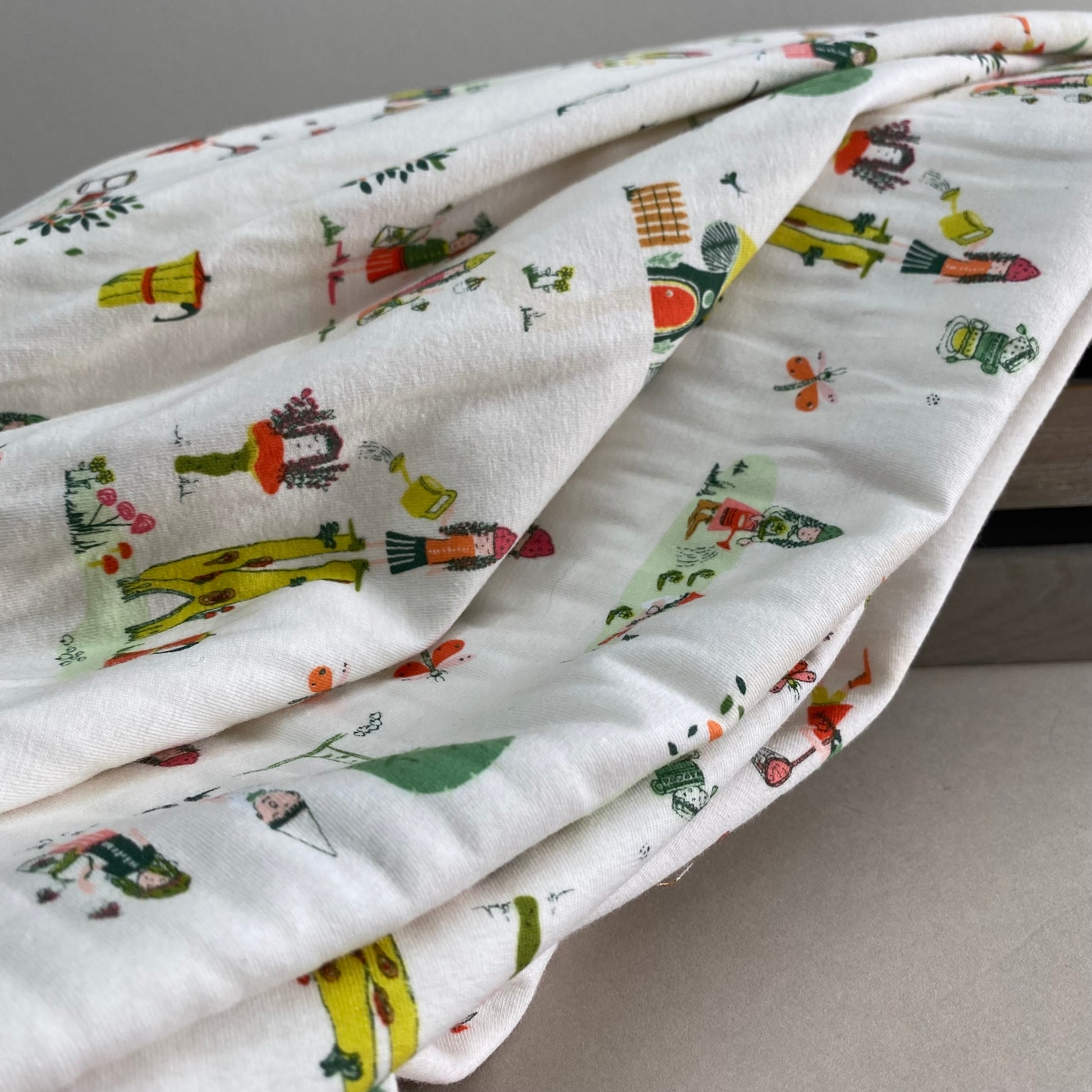 A sweet digitally printed knit designed by Alexandra Bordello on warm blush background, warm and muted, perfect for warm complexions