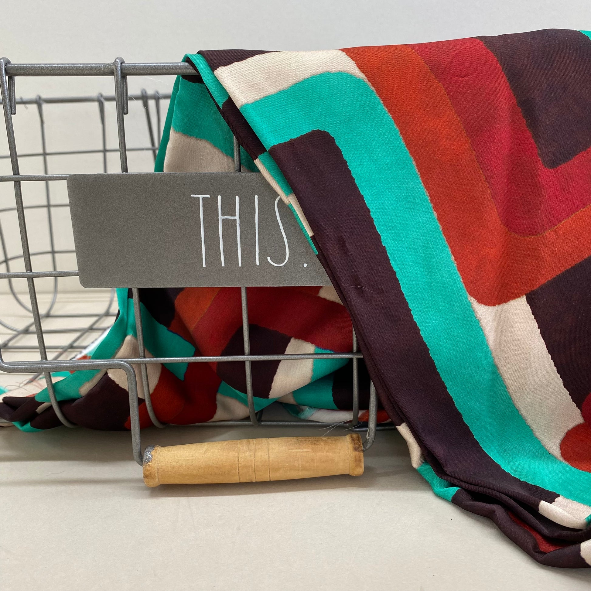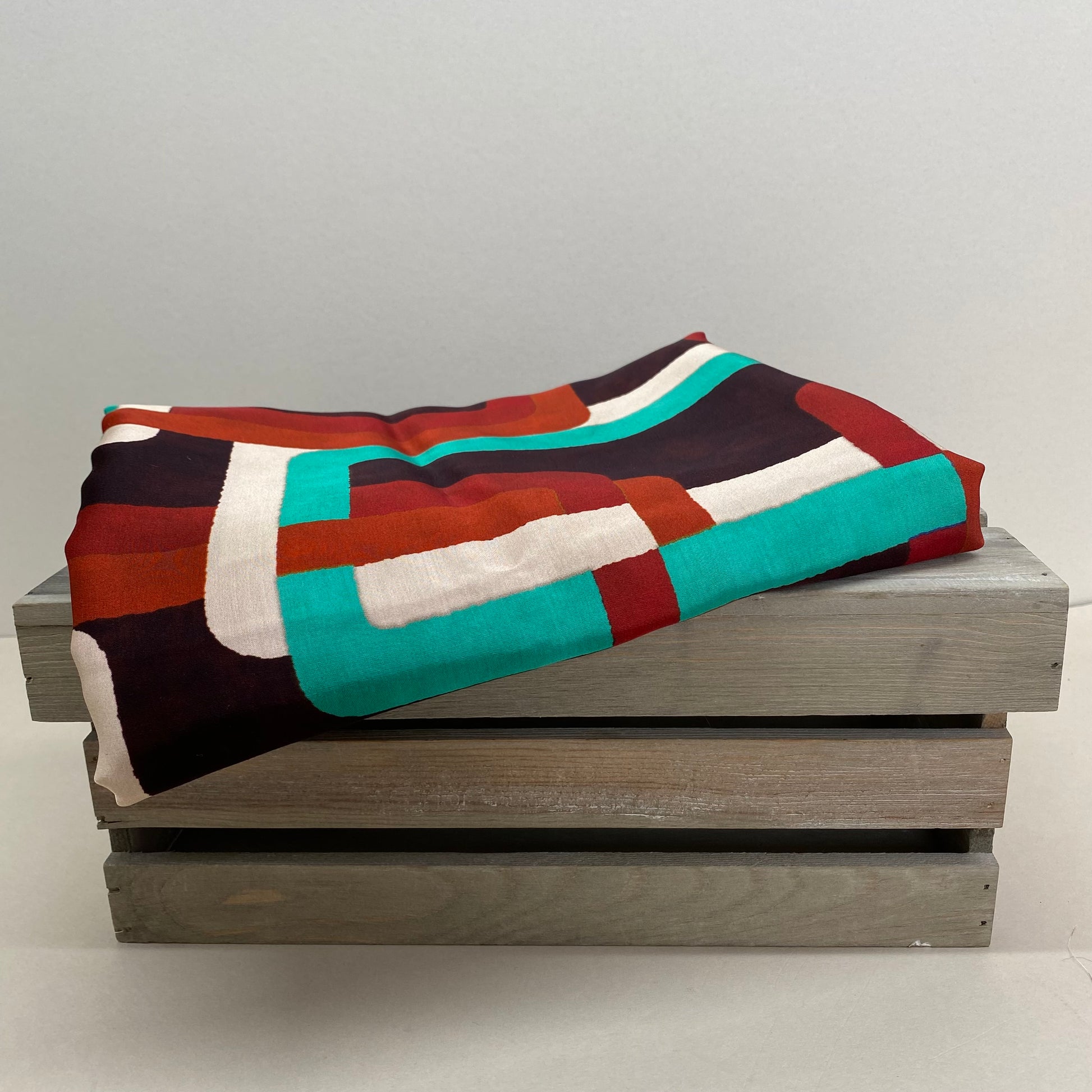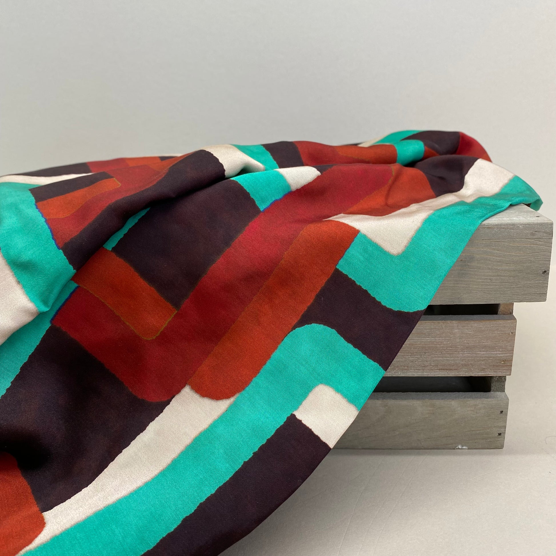 Bella Neopolitana; a modern colour block print print in a lovely bitter chocolate, mint, spice and vanilla colour way.