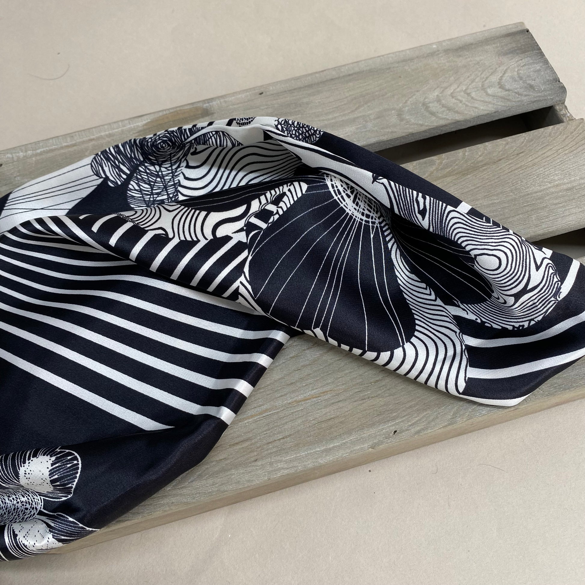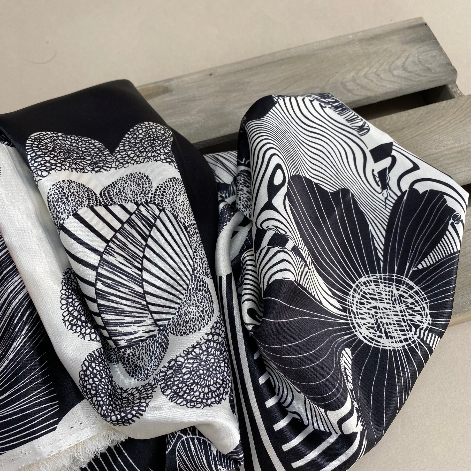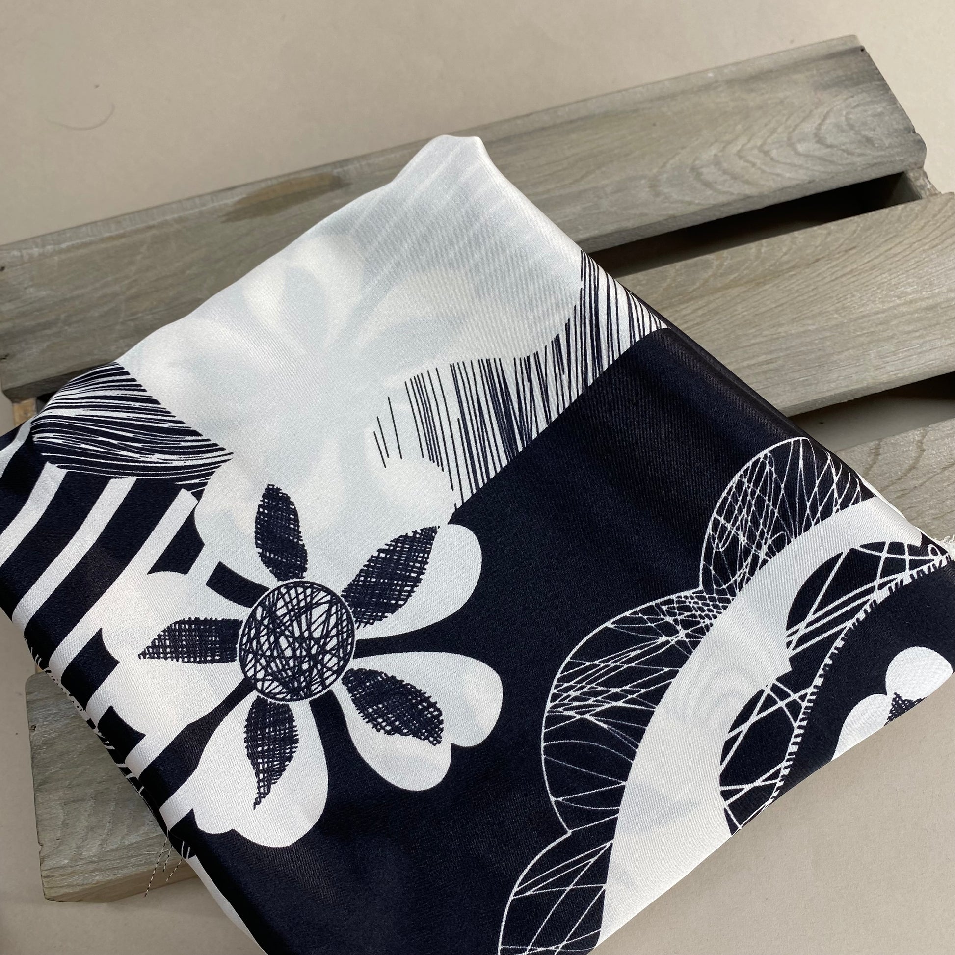 Black and White Floral Motif Sateen 1.25m