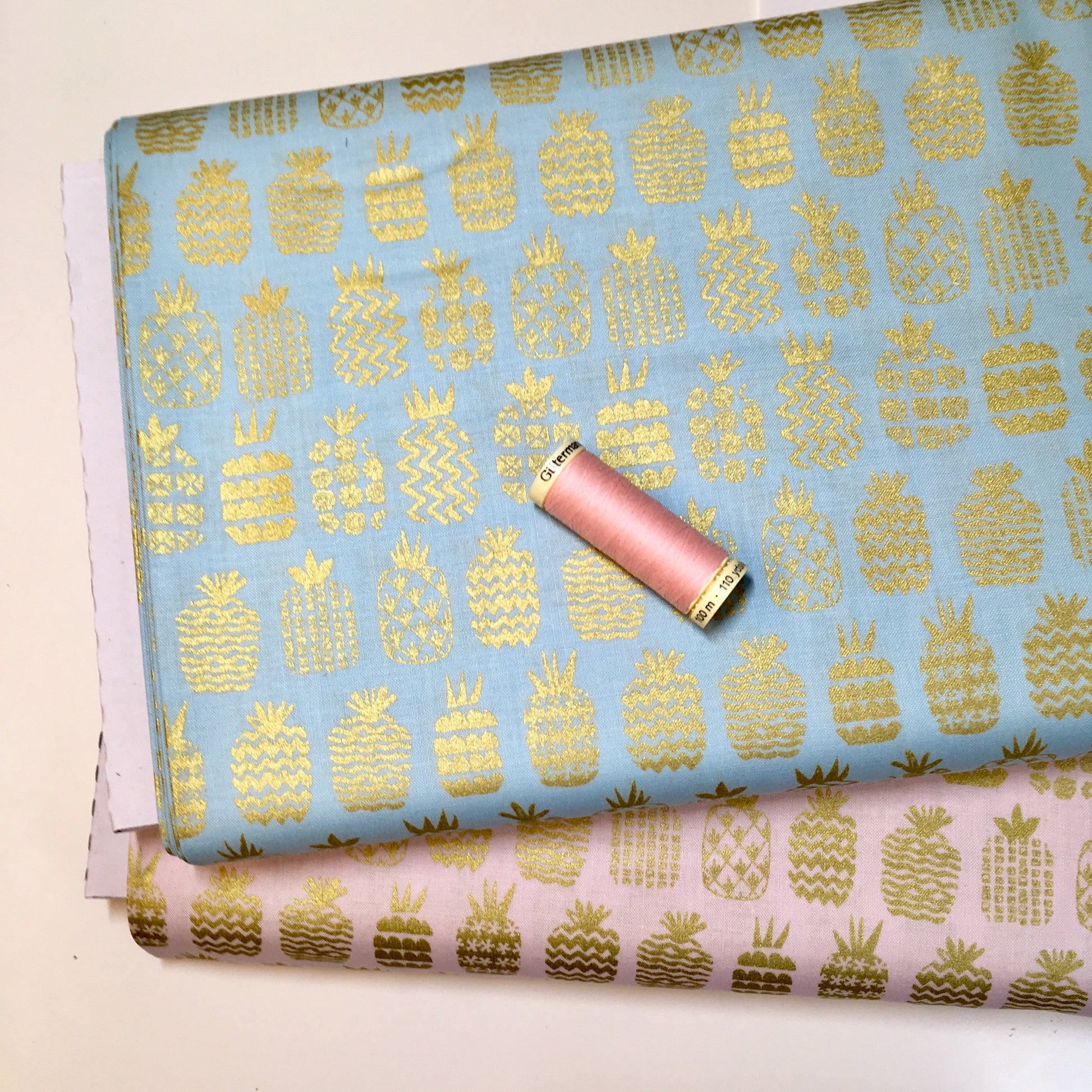 A stunning soft woven 100% Cotton fabric from Dashwood studio's Ocean Drive collection designed by Steph Thannhauser . In beautiful pastel shades this metallic pineapple print is simply gorgeous.