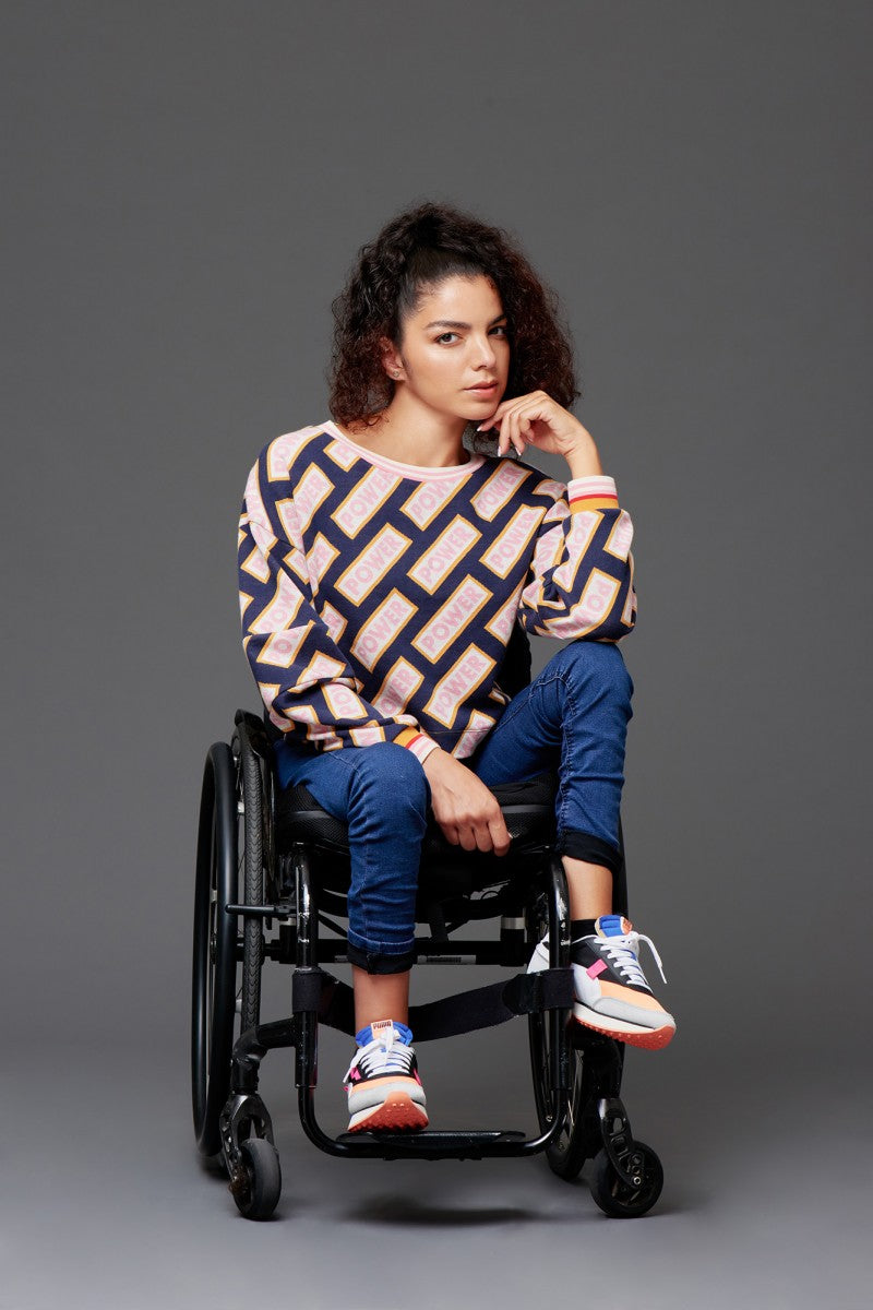 Sweatshirt with pieced statement sleeves. Version A has side slits and a funnel neck, version B is cropped and finished with ribbing.