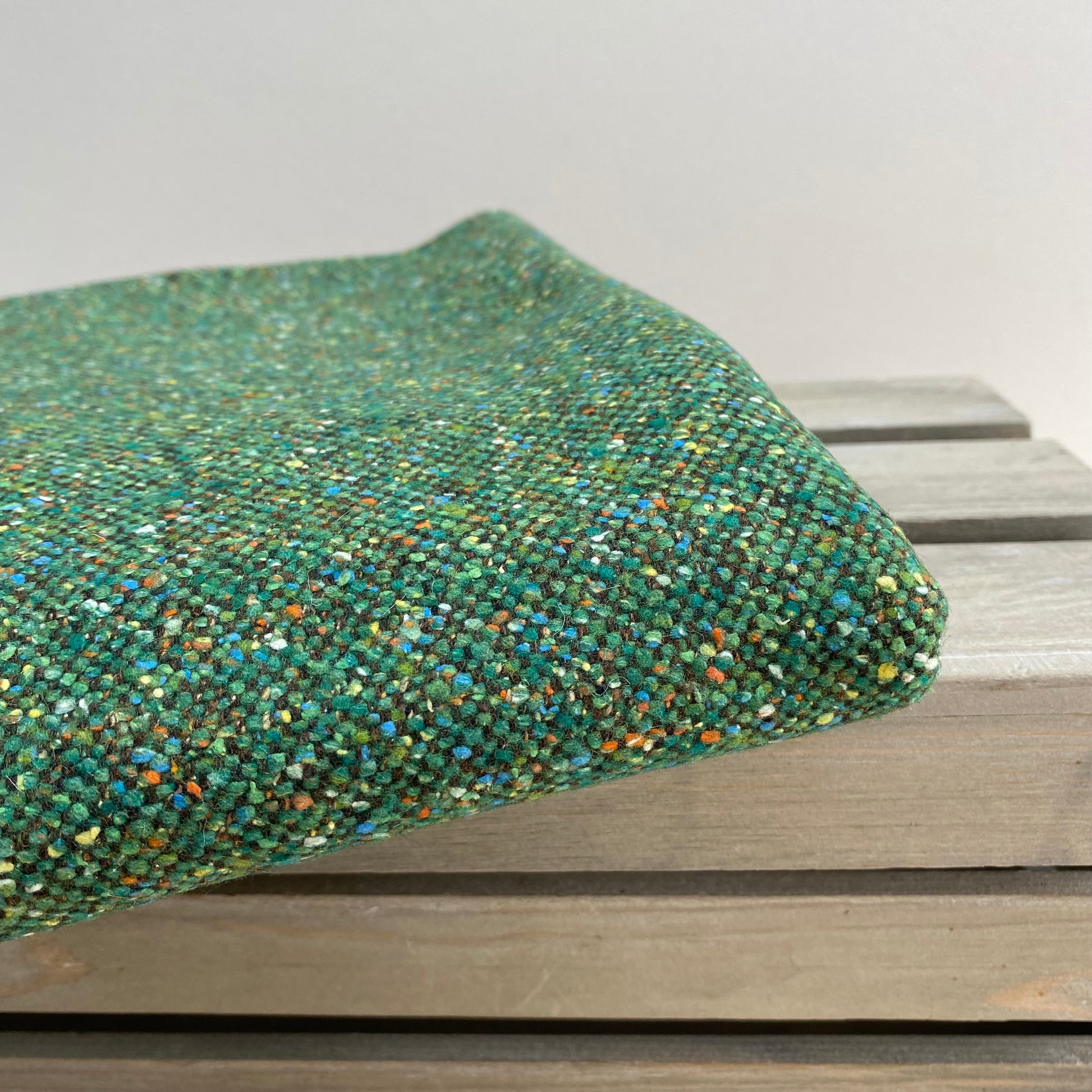 Ex Designer Wool Silk Blend Green Melange Tweed 1m