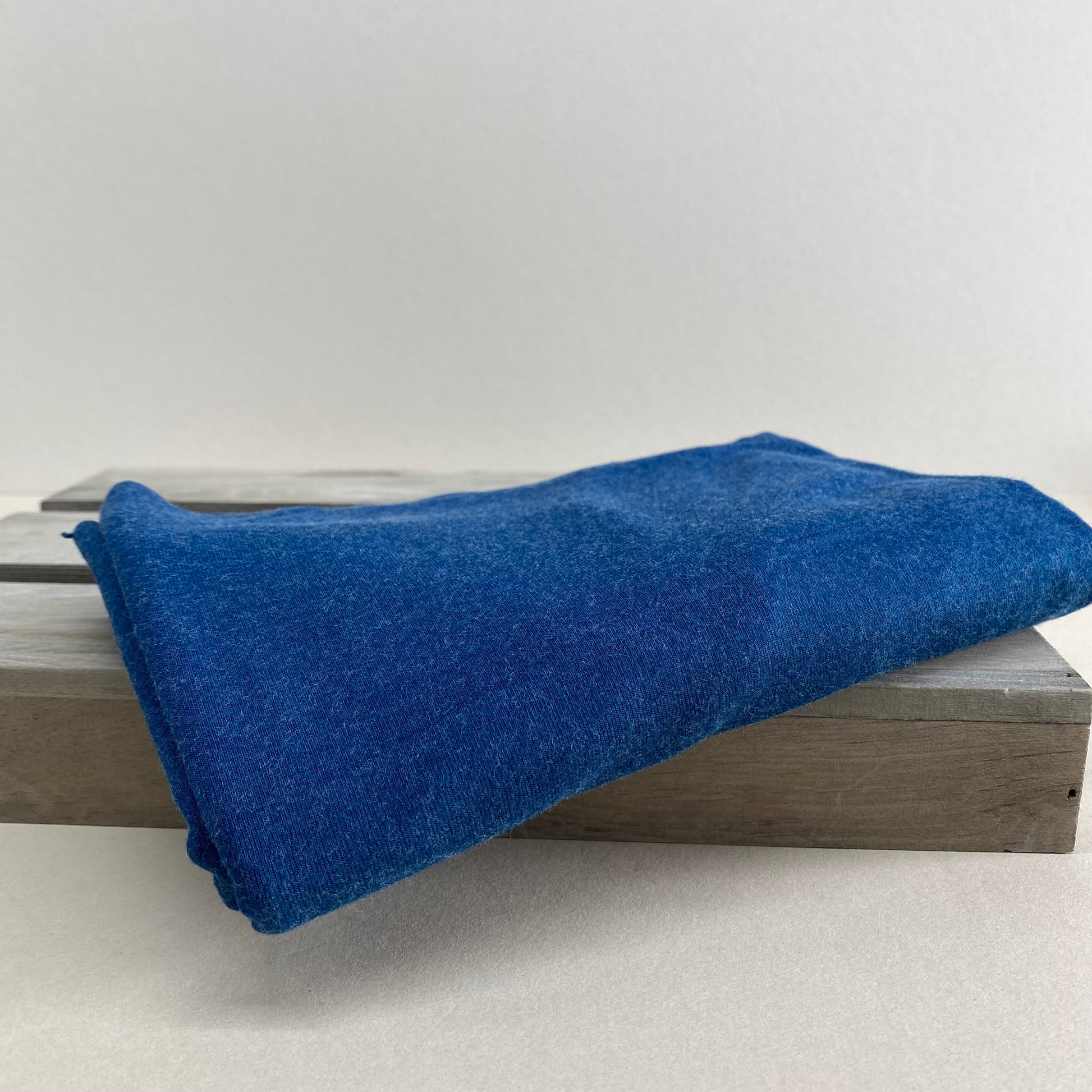 A stunning medium weight soft jersey fabric with a heather melange finish in dark marine blue