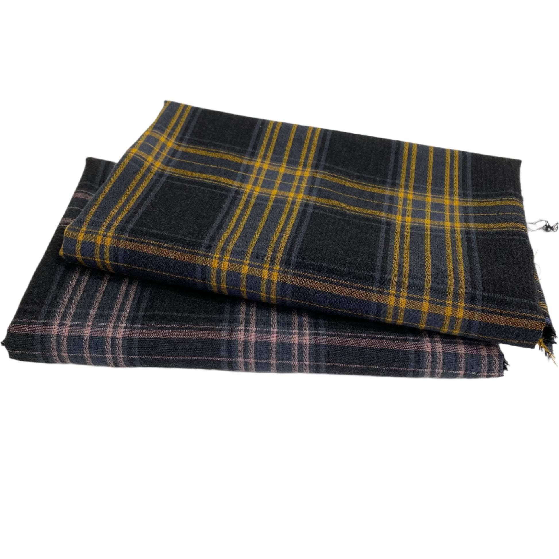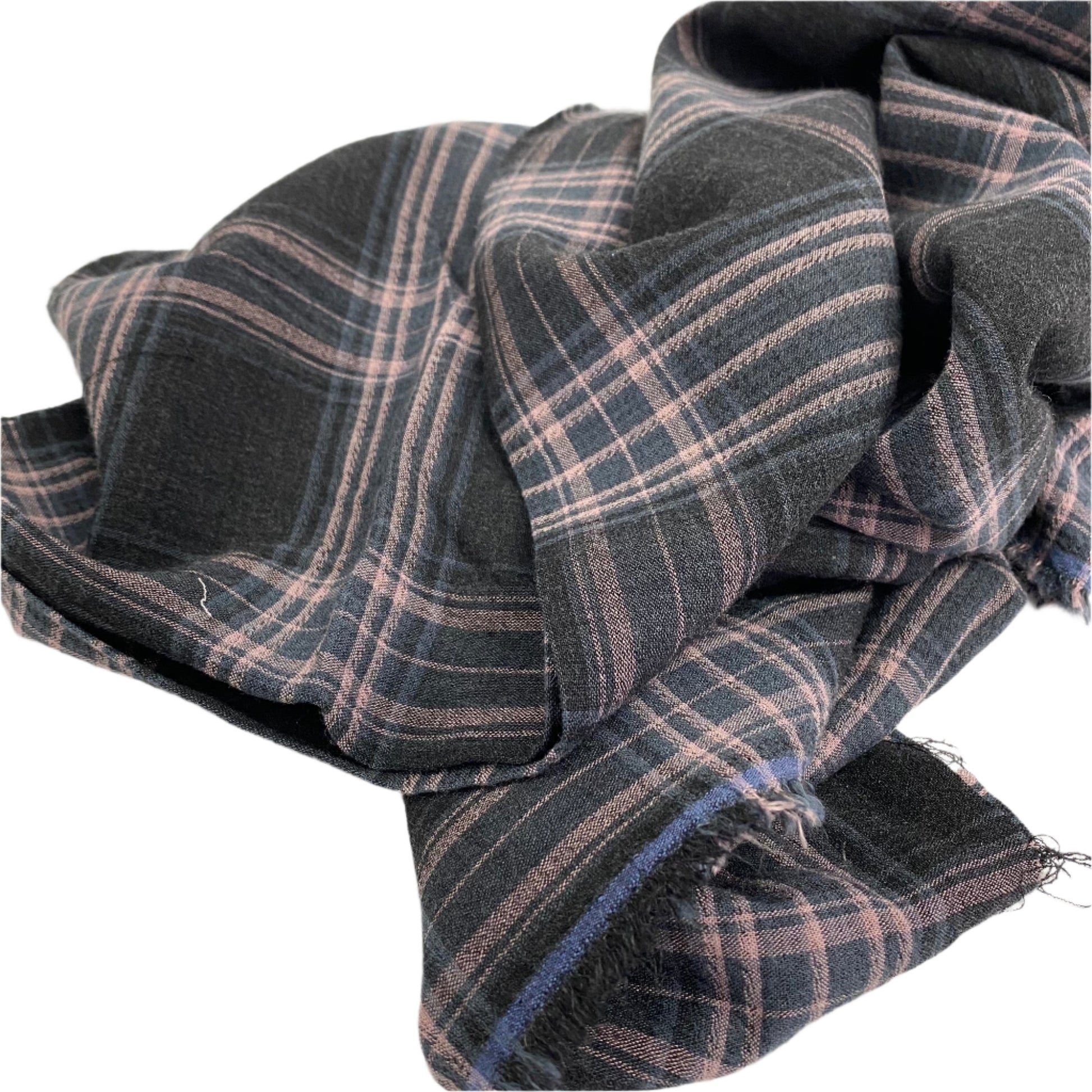 This gorgeous tartan-style, tricolour check is a rayon blend, but has the feel of a soft cotton shirting. The spandex content gives it a small amount of stretch on the bias, so it would make a great pair of comfy summer pyjama bottoms! This lovely fabric is also available in an Ochre colour way on our site.