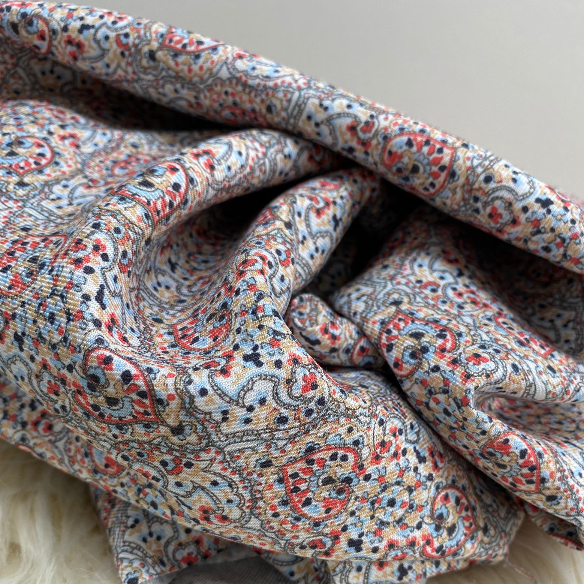 Paisley , a pink viscose Viella fabric with an overall paisley design.