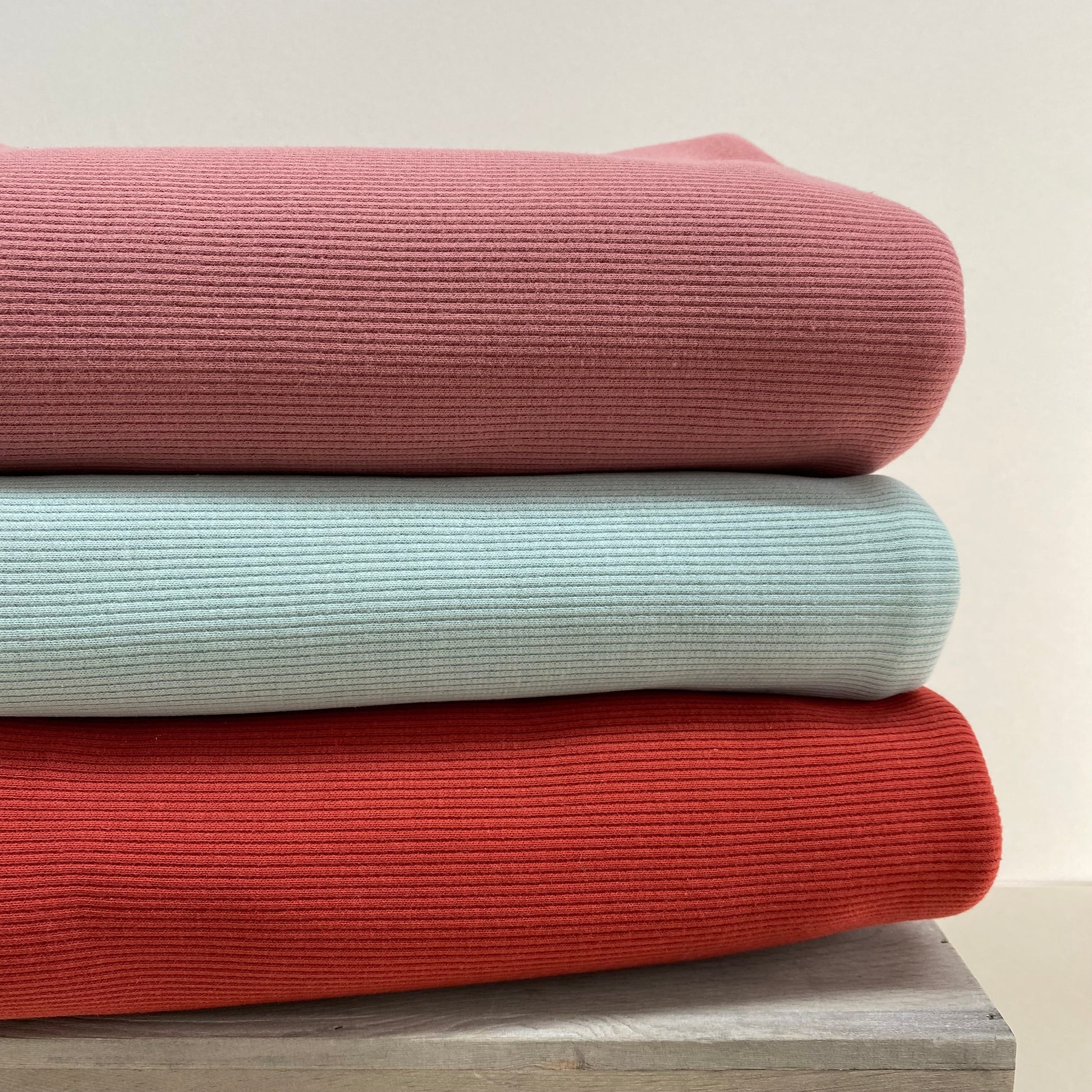 A stunning soft ribbed jersey knit fabric, predominately natural fibre bringing comfort and creativity to your garments. It's wonderfully soft, yet handles the rigours of everyday wear and multiple washing with ease.