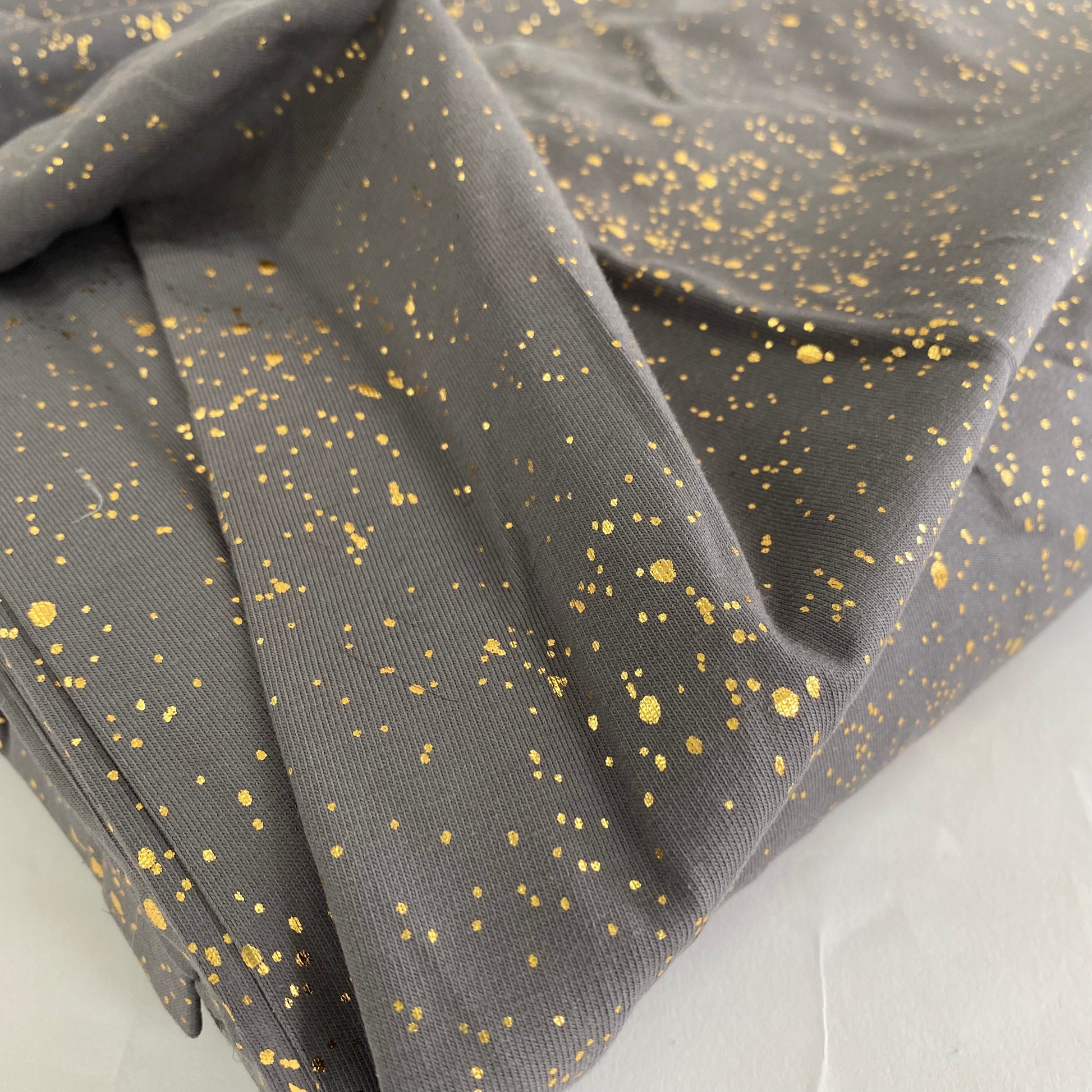 Spotty Cotton Jersey Fabric Sparkly Gold