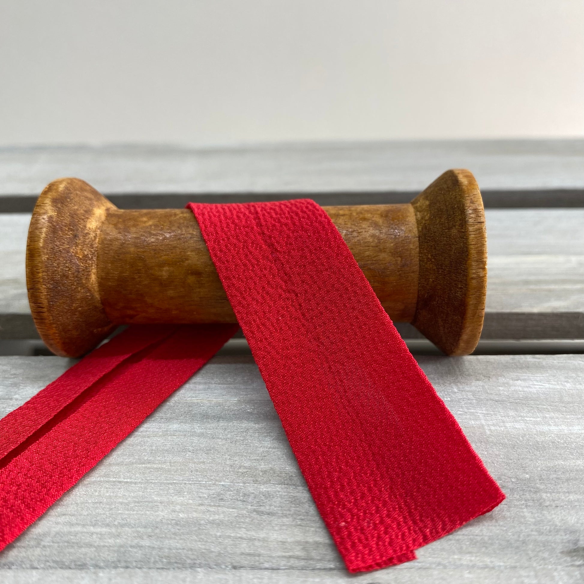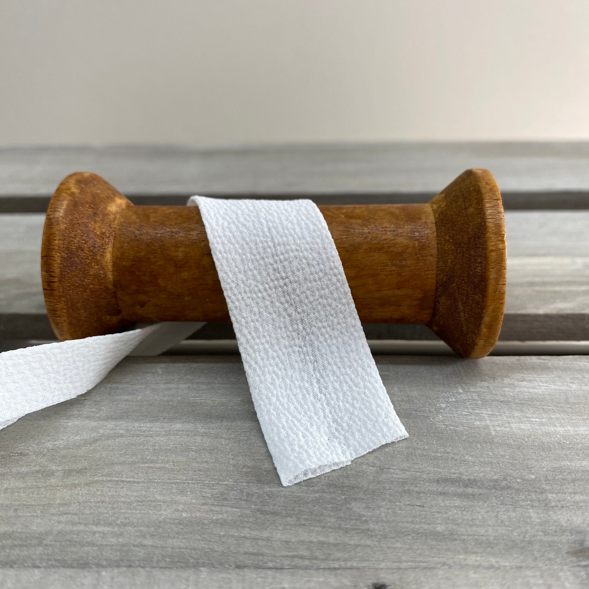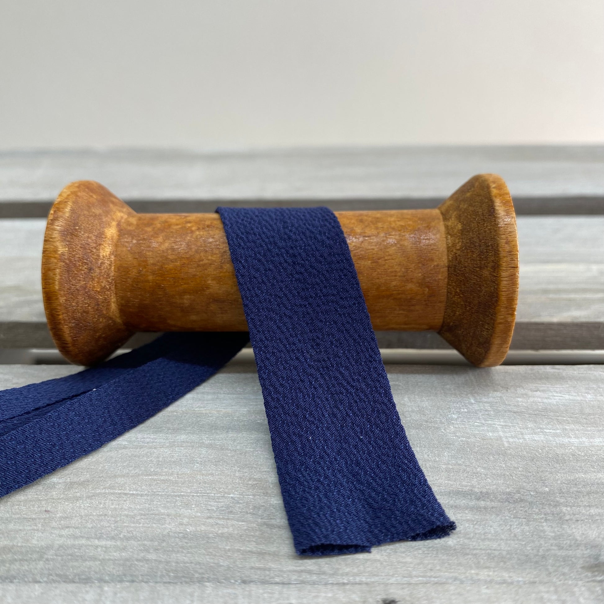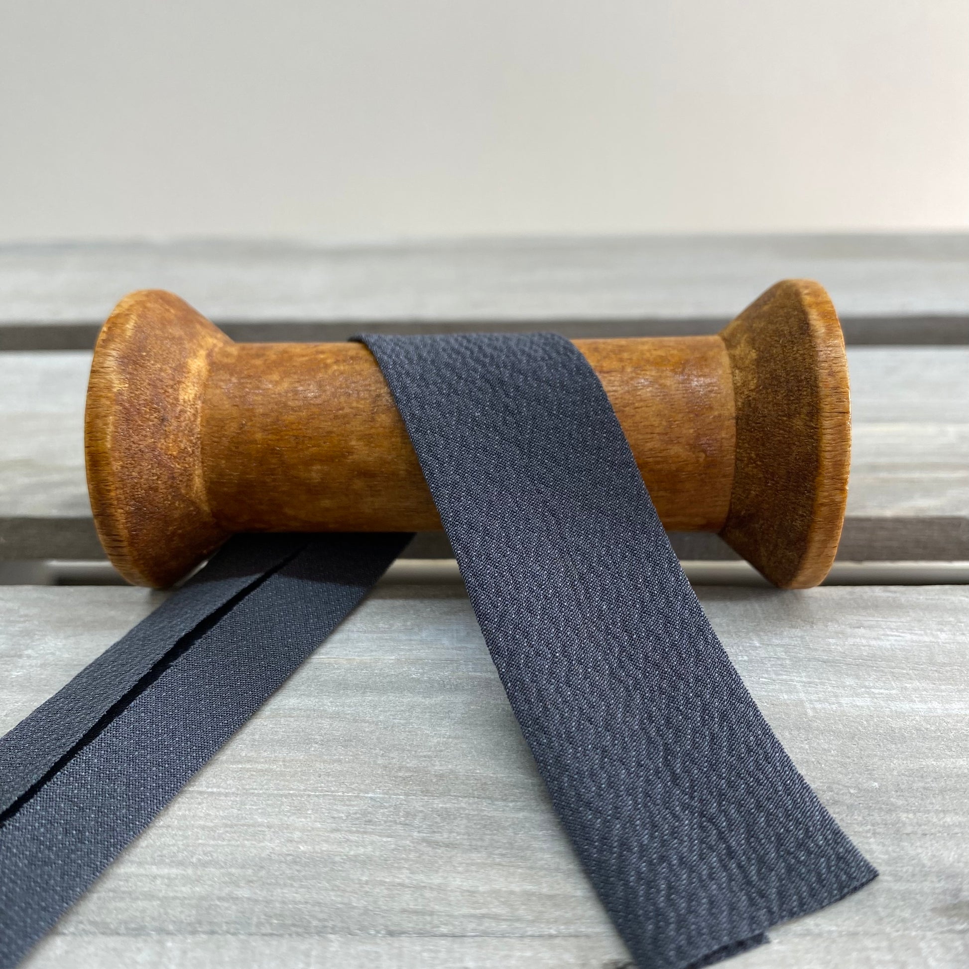 Stunning quality stretch crepe bias binding , available in six basic colours, prefolded for easy of use. Perfect for binding lightweight fabrics.