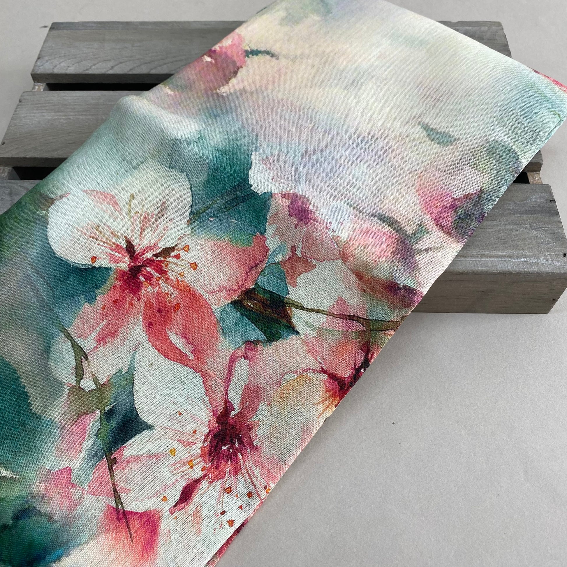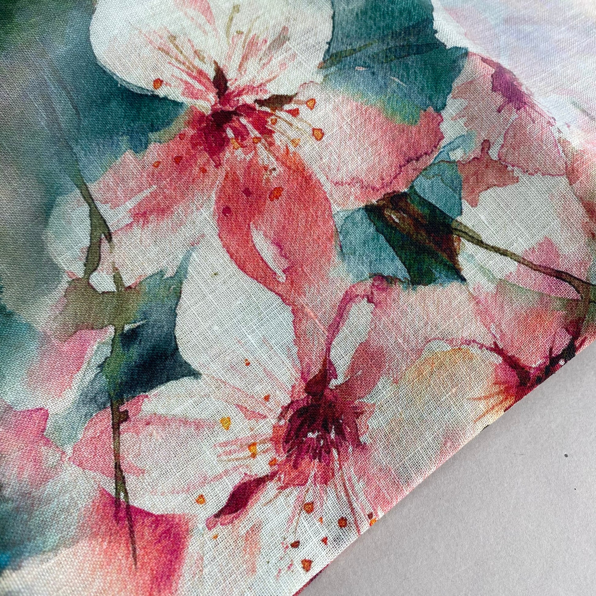 Watercolour Blossoms Linen Print 1.25m